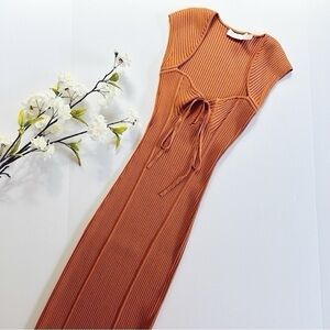 Jonathan Simkhai Florence Ribbed Midi Dress in Brown