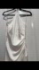 Style: wedding, party, pre-wedding, asymmetrical open slit at leg, white colorway with figure hugging ruching at waist and a strappy, halter neckline