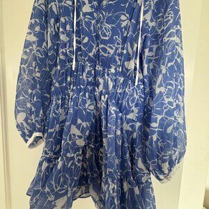 Jonathan Simkhai Harlowe Mini Dress Blue Amalfi Abstract Floral Long Sleeves