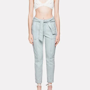 Jonathan Simkhai Henley Tie Waist Straight Leg jeans Blue Cotton Denim Size 28 NWT New with tags
