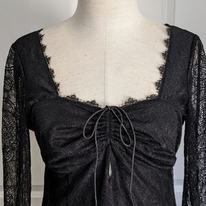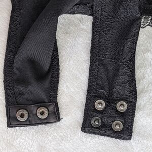 Jonathan Simkhai Intermix Bodysuit Lace Thong Long Sheer Sleeves Black M NWT