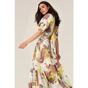 Jonathan Simkhai Iva Dress Floral Pleated Poplin Midi Multicolor Size 4
