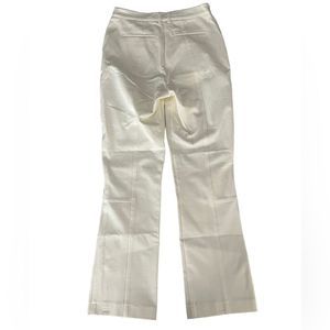 The Jesslyn Cropped Pant in White. Everyday tailoring trouser with cropped hem and subtle, flared leg in a stretch twill blend. Purposeful exposed seams nod to a modern, utilitarian aesthetic.