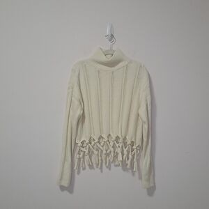 Jonathan Simkhai Josephine tassel turtleneck sweater white small NWOT