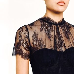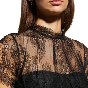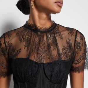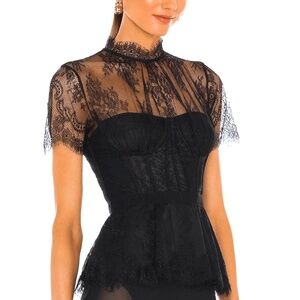 Khelani lace panel stretch design top from Jonathan Simkhai with sheer lace detailing with short sleeves and peplum hem.