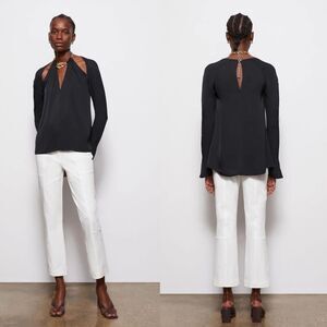Jonathan Simkhai Krishna Black Long Sleeve Chain Detail Blouse Size XS