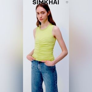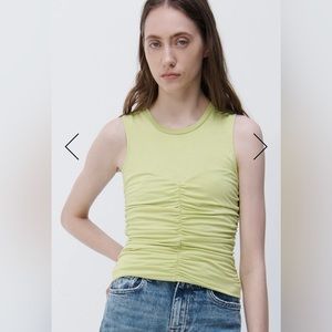 Jonathan Simkhai Kristiana Ruched Bodice Crewneck Tank Acid Lime NWT