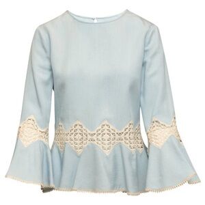 Jonathan Simkhai Light Blue & Cream Bell Sleeve Top