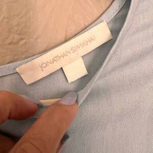 Designer Jonathan Simkhai in a beautiful Light Blue color and cream trim.