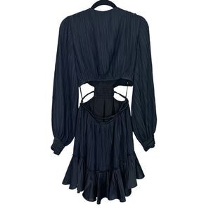 Jonathan Simkhai Londyn Pleated Crepe V Neck Cut-Out Mini Dress Black Medium