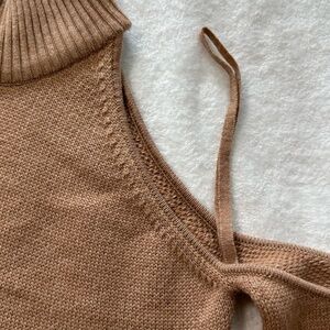 Jonathan Simkhai Loopy Yarn Cold Shoulder Pullover Tan Turtleneck Sweater
