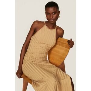 Jonathan Simkhai Megan Tan Ribbed Knit Racerback Sleeveless Midi Dress Size S