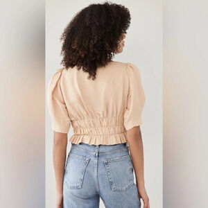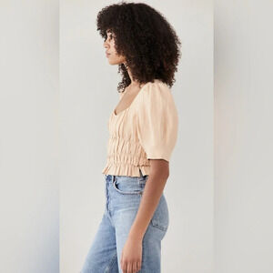 Jonathan Simkhai Milkmaid Smocked Linen Crop Top Womens Small Cream Tan Bohemian