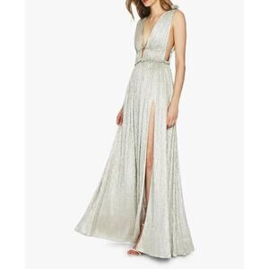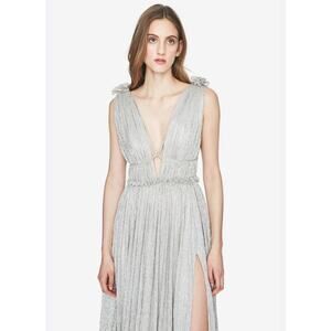 Jonathan Simkhai NEW Open Neck Maxi Dress in Cool Silver Size M Deep V Open Back