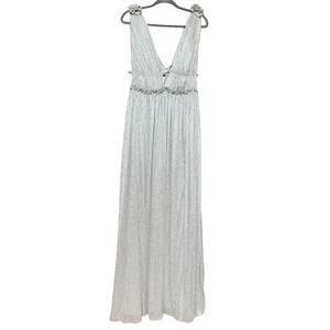 This stunning Jonathan Simkhai maxi dress is perfect for your next special occasion! In a cool silver color, this dress features a plunging V-neckline and a strappy front detail for a touch of elegance.