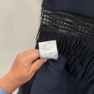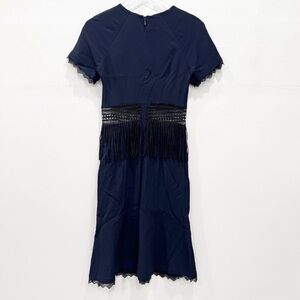 Jonathan Simkhai Navy Blue Black Crochet Fringe Fluted Dress Knee Length Size 2