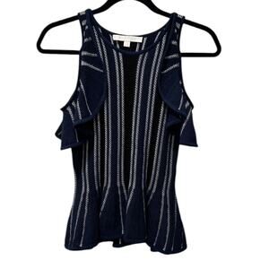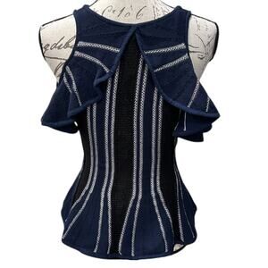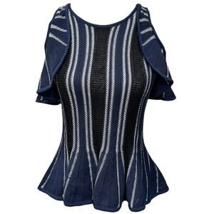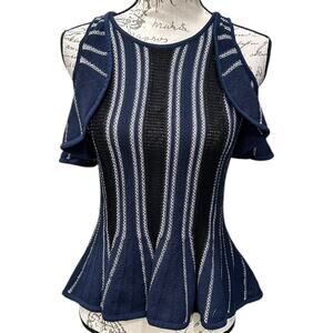 Jonathan Simkhai Navy Blue Striped Cold Shoulder Knit Crochet Peplum - new condition