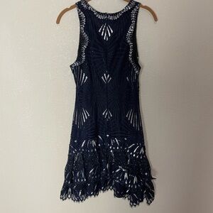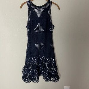 Jonathan Simkhai Navy Metallic Lace Ruffle Dress 0