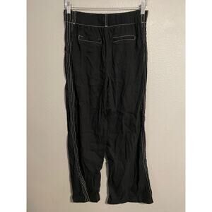 Jonathan Simkhai Pants Womens 12 Black Linen Blend Contrast Stitch Wide Leg