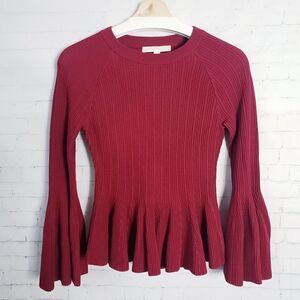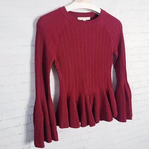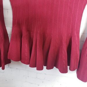 Jonathan Simkhai Peplum Bell Sleeve Ribbed Knit Sweater S Crimson Red Christmas. Perfect holiday party sweater!! Excellent pre-owned condition, no flaws.