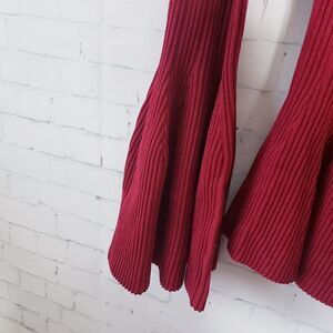 Jonathan Simkhai Peplum Bell Sleeve Ribbed Knit Sweater S Crimson Red Christmas