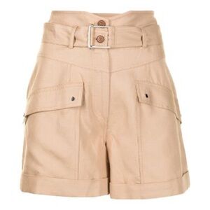 Jonathan Simkhai Prisha Belted Cuffed Safari Cargo Shorts Beige High Rise Sz 8