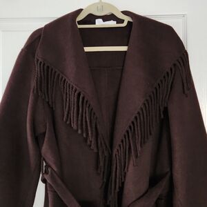 Jonathan Simkhai Rowen Wool Fringe-Trimmed Coat, Brown, Size L