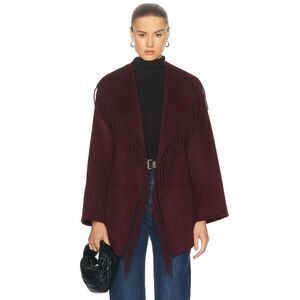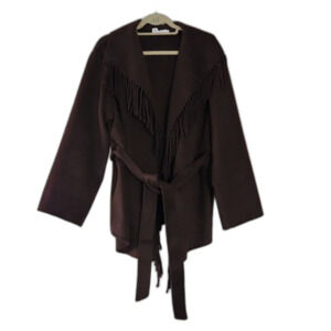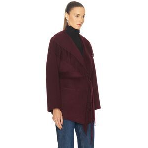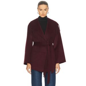 Jonathan Simkhai Rowen Wool Fringe-Trimmed Coat, Brown, Size L