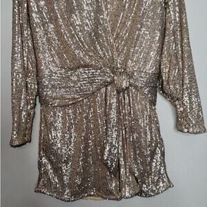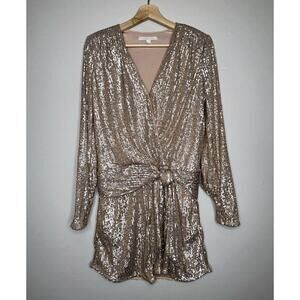 Jonathan Simkhai Roxi Sequin Mini Dress Drop Waist Tie V-Neck Gold Size XS
