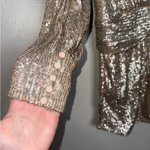 keywords: statement, metallic, drop waist, party, Coachella style, birthday, going out, special occasion, photo shoot, deep v-neck, pockets, vegas theme party, timeless, nye, new years eve, holiday, christmas party, capsule, staple, luxe, high end, show stopper
