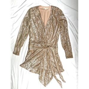 Jonathan Simkhai Roxi Sequin Wrap Mini Party Dress Neutral Champagne , XS