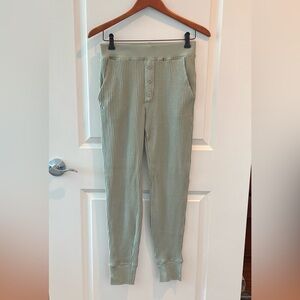 Waffle jersey jogger pant with exposed button up fly, ribbed cuffs, and elasticized waistband.
