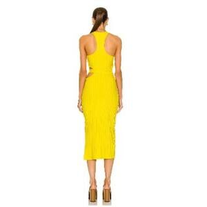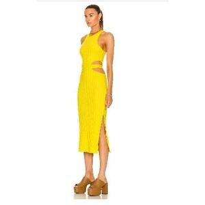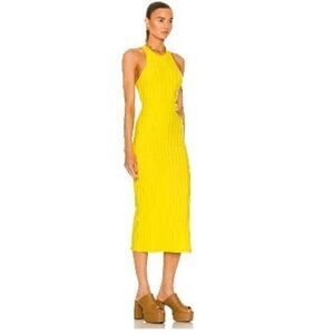 A fun, citrusy color and bold cutouts bring a cool, on-trend look to this Jonathan Simkhai STANDARD dress. Slim-fitting in a ribbed knit, this midi will pair well with all sorts of sporty sneakers and statement sandals.