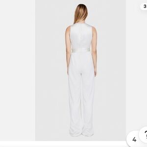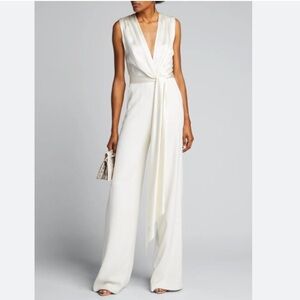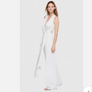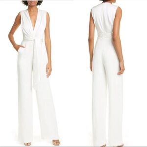 Style Tags: Elegant, Occasion, White Party, Wedding, Rehearsal Dinner, Guest, Shower, Girls brunch, Resort Travel designer jumpsuit, formal jumpsuit, wedding guest outfit, bridal shower outfit, elegant jumpsuit, wide leg jumpsuit, sleeveless jumpsuit, tie waist jumpsuit, deep v neckline, minimalist fashion, resort chic, summer white, evening wear, red carpet style, modern bridal, luxury jumpsuit, sophisticated style, tailored jumpsuit, Luxury Look,