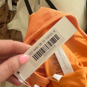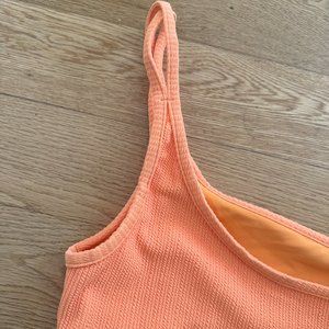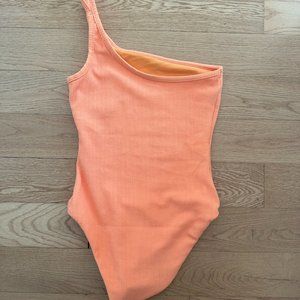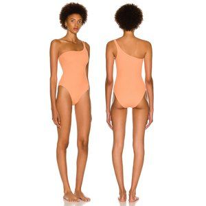 Jonathan Simkhai Shayna Ribbed One Piece Swimsuit Sz M in Papaya One Shoulder