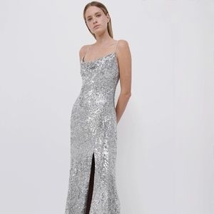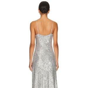 Jonathan Simkhai Silver Finley All Over Sequined Lined Dress Gown IT44