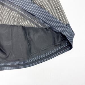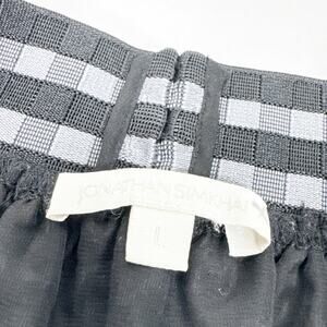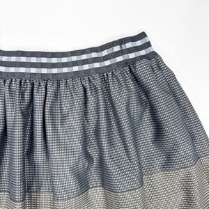 Jonathan Simkhai navy A-line skirt in size large with micro-check colorblock stripes and gingham stretch waistband.