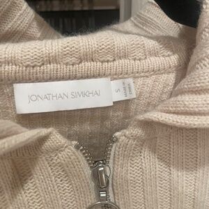 Jonathan Simkhai 3/4 zip up sweater. Size small. Signs of wear including some pilling near the elbows. Please see pics for more details