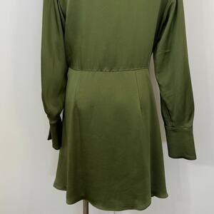 Jonathan Simkhai Talit Draped Mini Dress Dark Green Satin M