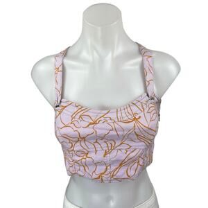 Jonathan Simkhai Tilly Purple Gold Floral Sleeveless Tie Back Cami Crop Top Sz M