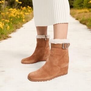 #JonathanSimkhai #SuedeBoots #FauxShearling #WedgeBoots #AnkleBoots #ToffeeBrown #WinterStyle #CozyChic #Size7 #WomensFashion