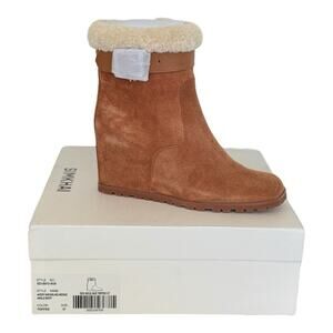 Jonathan Simkhai Toffee Suede Avery Faux Shearling Wedge Ankle Boots Size 7
