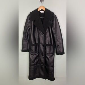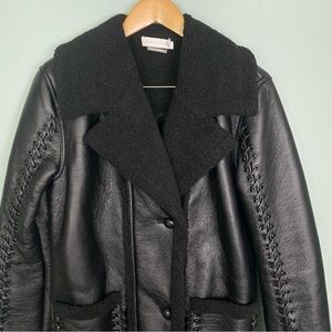 Jonathan Simkhai Windsor Vegan Sherpa Biker Coat Black Braided Long Length XS