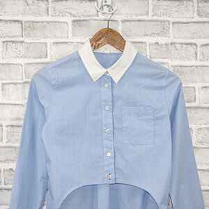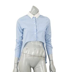 Jonathan Simkhai Women's Hi low Cropped front Oxford Shirt in Blue size Small