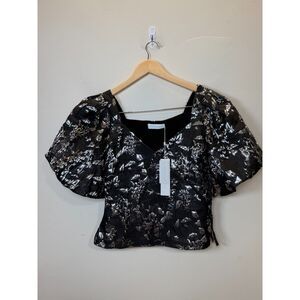 Jonathan Simkhai Women's Size 2 Black Metallic Taylor Wrap Top Puff Sleeve NWT
