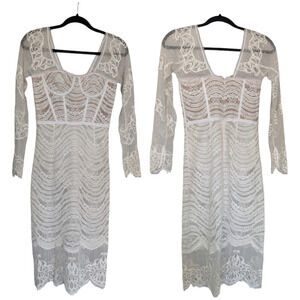 Jonathan Simkhai XS 2 Bustier Mixed Lace Overlay Lined Bodysuit White Midi Dress