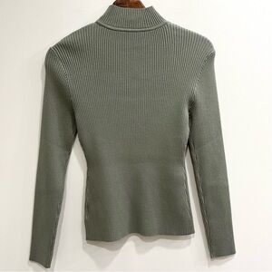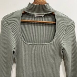 Jonathan Simkhai janessa ribbed long sleeve sweater top chocker neckline sage L