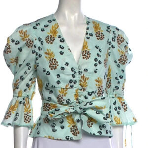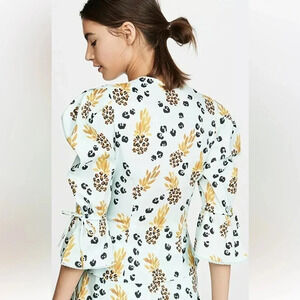 Jonathan Simkhai Corsica Runched Top in Pinapple Leopard Print Size S NWOT