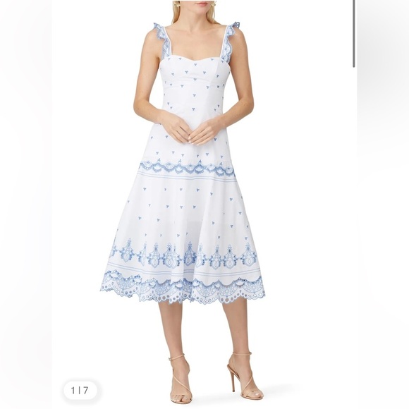 Jonathan Simkhai white & sky blue eyelet midi dress S/M Please read about size