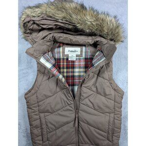 Jonathan Stone Puffer Vest Girls Large 14 16 Brown Faux Fur Hood Casual Preppy